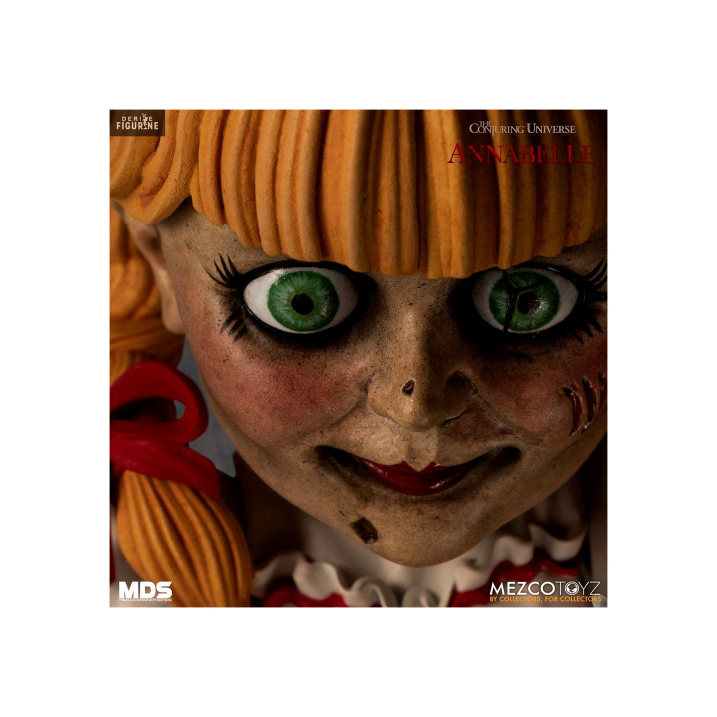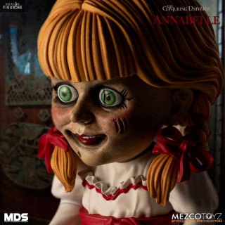 Official figure of Annabelle which measures about 15 centimeters high. It is from the Mezco Designer Series (MDS) collection. The manufacturer is Mezco Toys.