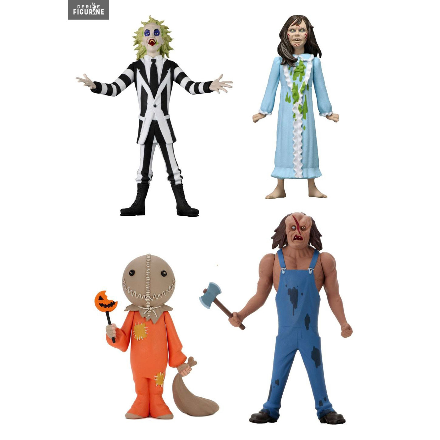 Official figures of Victor Crowley, Regan, Beetlejuice and Sam which measure about 15 centimeters high. They are from the Toony Terrors collection. The manufacturer is NECA.