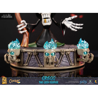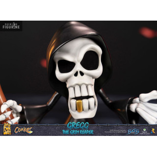Immerse yourself in the crazy world of Conker's Bad Fur Day with the Gregg the Grim Reaper Figure, an exceptional creation from First 4 Figures. This striking piece highlights Gregg's charismatic character, adding a macabre and comedic touch to your collection.