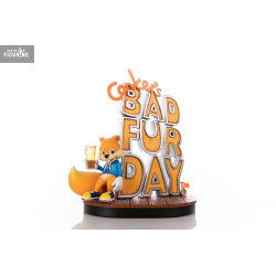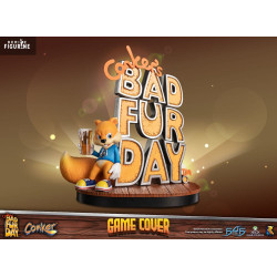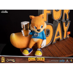 This resin statue pays tribute to the game’s iconic box art. Conker leans casually against the large, textured “BAD FUR DAY” logo, beer in hand, standing atop a bar-style wooden floor base. It’s a direct visual nod to the chaotic and cheeky spirit of the game.