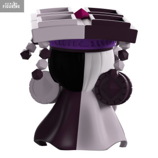 The weapon he holds is finely reproduced, featuring geometric designs and contrasting colors of grey, white, and purple. Molded details on the accessories and headdress add visual richness while maintaining the license’s clean, stylized aesthetic.