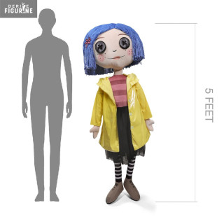 Official plush Coraline with Button Eyes in 100% polyester which measures approximately 152 centimeters high, scale 1/1. The manufacturer is NECA.