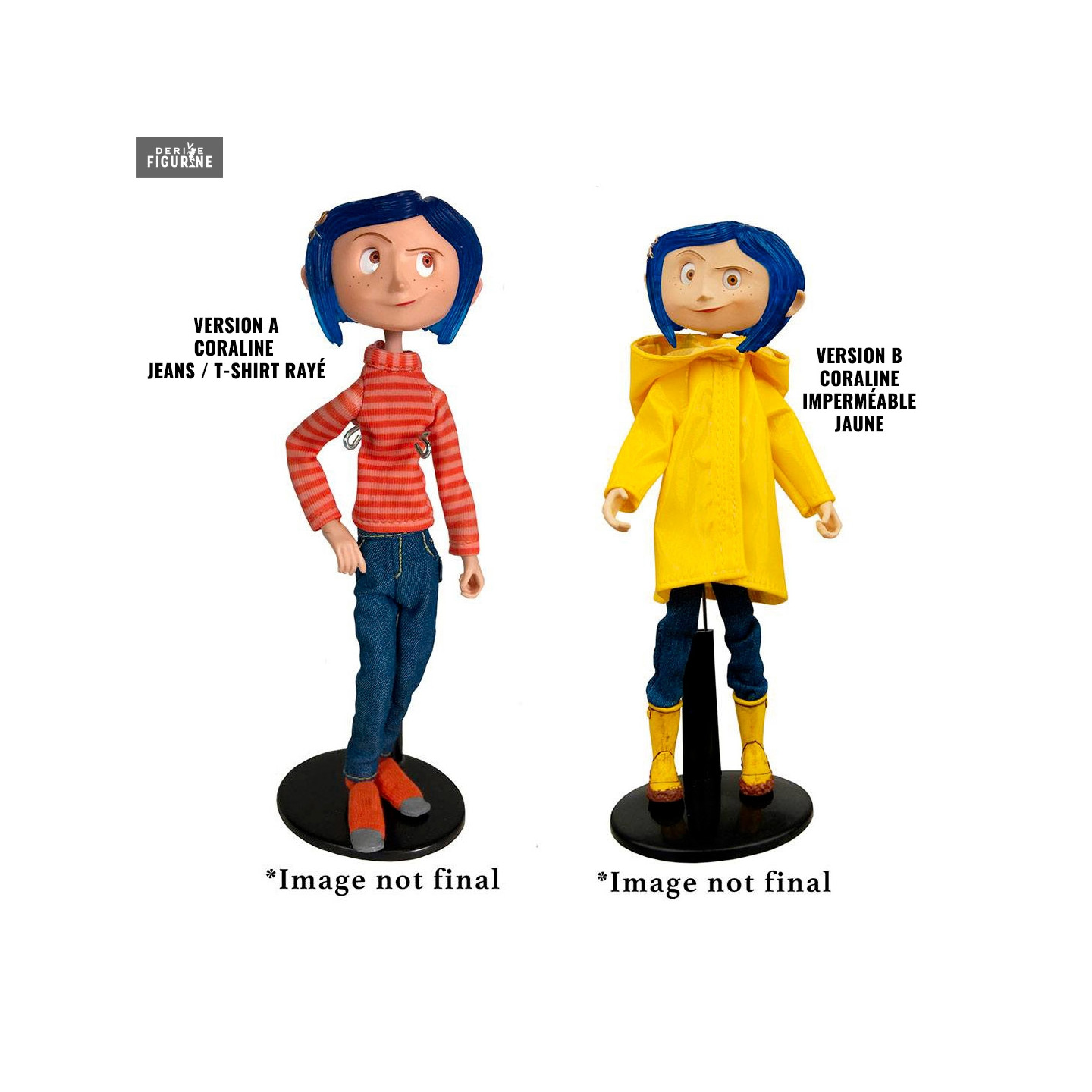 Official Coraline figure of your choice between in shirt (Version A) or in raincoat (Version B) which measures about 18 centimeters high. The manufacturer is NECA.