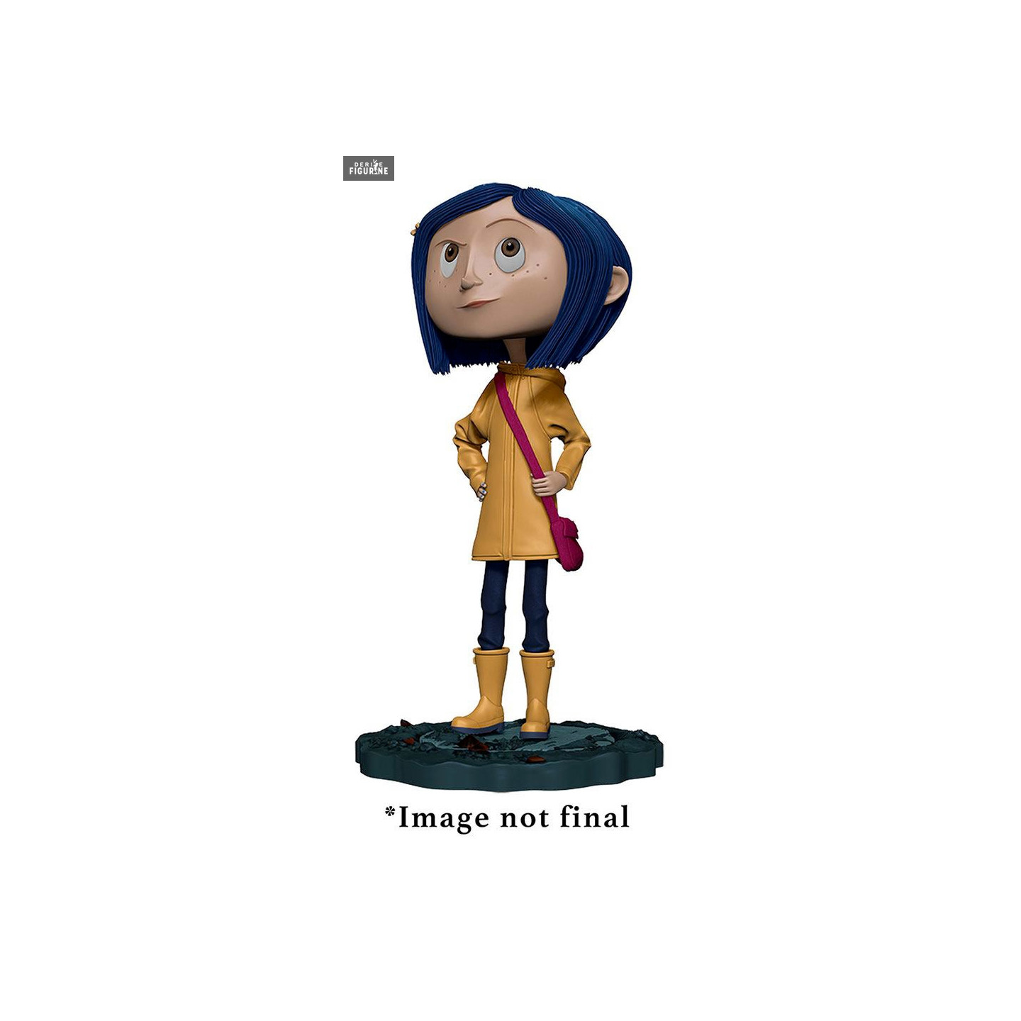 Coraline Jones has just moved in with her parents to a new home, but they do not really have a lot of time to spend with her. She will go explore the different rooms and one of them will plunge into a kind of parallel world more colorful than his. This figurine is a head knocker, which means that its head moves by itself.