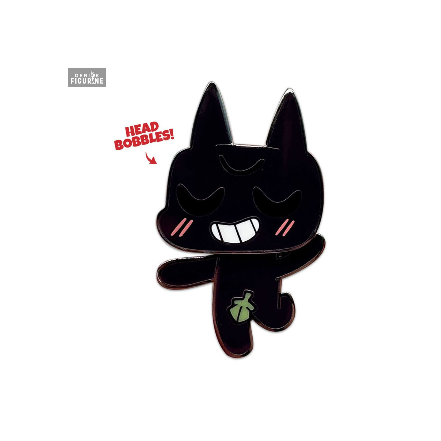 This pin captures her iconic design: a sinuous body topped by a broad, black head with rosy cheeks, half-closed eyes, and a mischievous grin. Mounted on a spring, the jiggle effect activates with each movement—extending the ritual trance. The clover on her belly hints at her mystical nature, while black-plated metal and smooth enamel create a striking contrast between shadow and color.