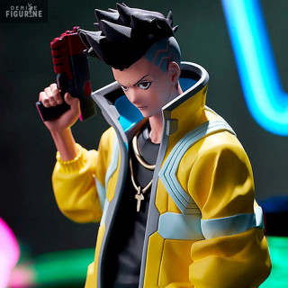 The “David” figurine from the Pop Up Parade collection is a superb representation of the protagonist of the “Cyberpunk: Edgerunners” series. David Martinez, a memorable character from this cyberpunk universe, is highlighted in this figurine which captures his style and his evolution throughout the series. At the start of the series, David is an American teenager of Latino origin, with black hair and a kitschy look. The figure accurately reflects her outfit, which includes a black t-shirt, two gold chain necklaces (one with a cross), gray sweatpants with yellow straps on the sides, and gray sneakers with blue straps and his mother's yellow EMT jacket, with blue luminescent material on the inside of the collar and a glowing green Edgerunners emblem on the back. “Cyberpunk: Edgerunners” tells the gripping story of David Martinez and his crew of edgerunners. This figurine is a great addition for fans of the series and the cyberpunk universe in general, because it perfectly embodies the style and evolution of this central character.