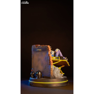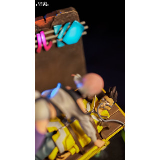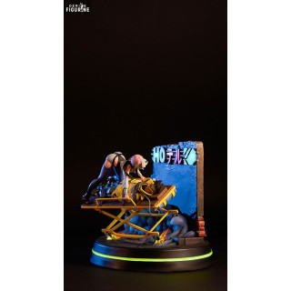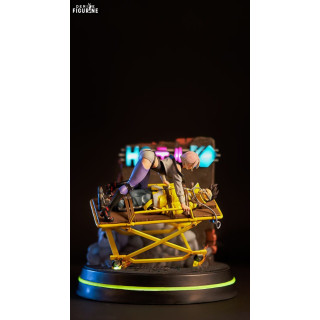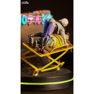 The figurine captures the tension and urgency of the escape of Lucy and David, the two main characters, as they appear in the animated series derived from the universe of "Cyberpunk 2077". Every detail, from the characters' intense expressions to the intricate construction of their vehicle, is rendered with meticulous attention, reflecting the quality of Neamedia.