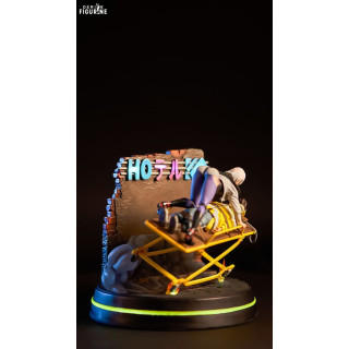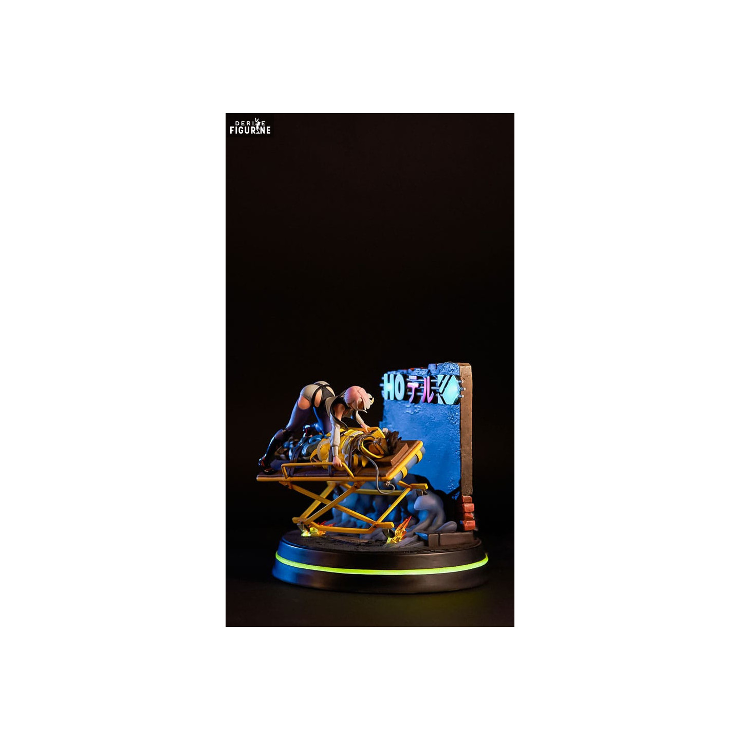 The inclusion of a USB-C cable reveals a unique feature: the illuminated base which brings an extra dimension to the room, evoking the iconic neon lights of the futuristic city. This feature enhances the cyberpunk vibe and makes this figure a truly unique collectible.