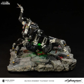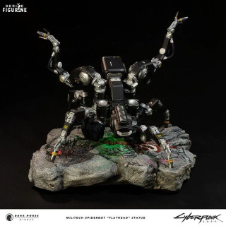 Experience the perfect embodiment of Night City's futuristic technology with this official Militech Spiderbot "Flathead" figure. Measuring approximately 25 centimeters tall, this resin statuette, produced by Dark Horse, is a spectacular addition for any collector and fan of the Cyberpunk 2077 universe.
