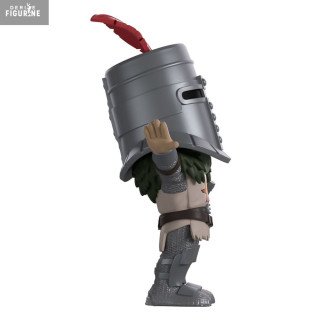 This vinyl figure faithfully captures his iconic look: a cylindrical helmet topped with a red plume, a green chainmail hauberk under a beige tunic emblazoned with a smiling sun, and metallic gauntlets and greaves. His arms raised in the classic gesture salute his jovial spirit, while the chibi silhouette amplifies his endearing charm.