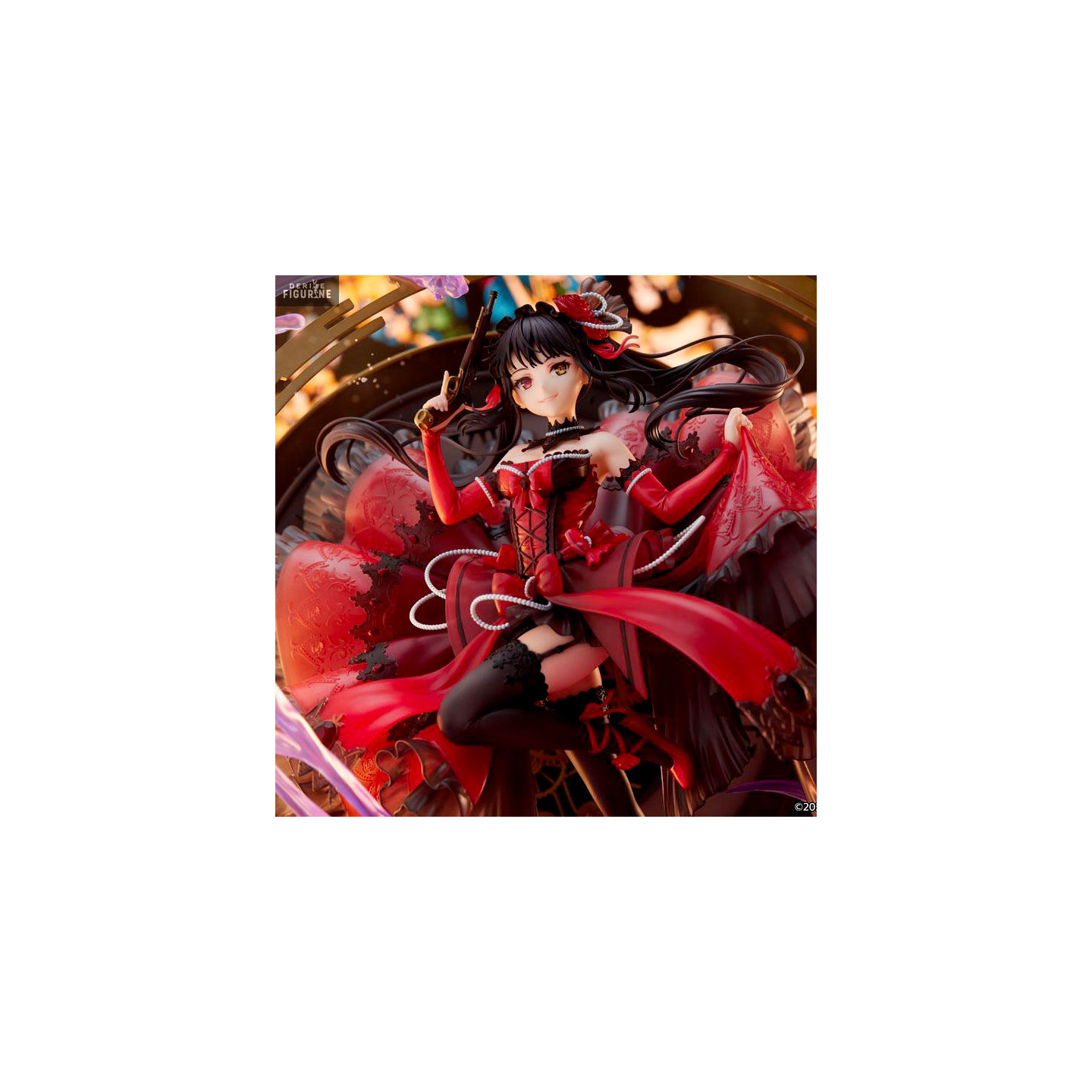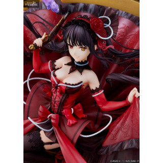 Official figure of Kurumi Tokisaki, Pigeon Blood Ruby Dress in PVC which measures approximately 33 centimeters high, scale 1/7. The manufacturer is Estream.