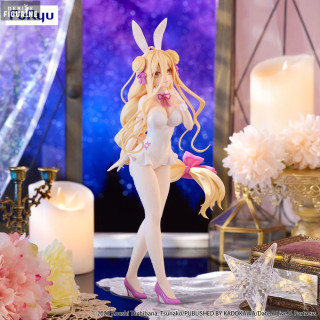 This version of Mukuro Hoshimiya in the BiCute Bunnies collection features her in a sparkling white bunny costume, accented with delicate pink ribbons. The body-hugging jumpsuit shows off her elegant curves, while her long blonde curls and bunny ears add a touch of charm and whimsy. Her pink heeled shoes complete the ensemble, giving her a graceful and seductive look.