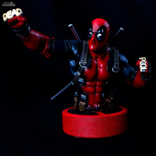 Official bust of Deadpool in resin which measures about 16 centimeters high, scale 1/6. The manufacturer is Semic.