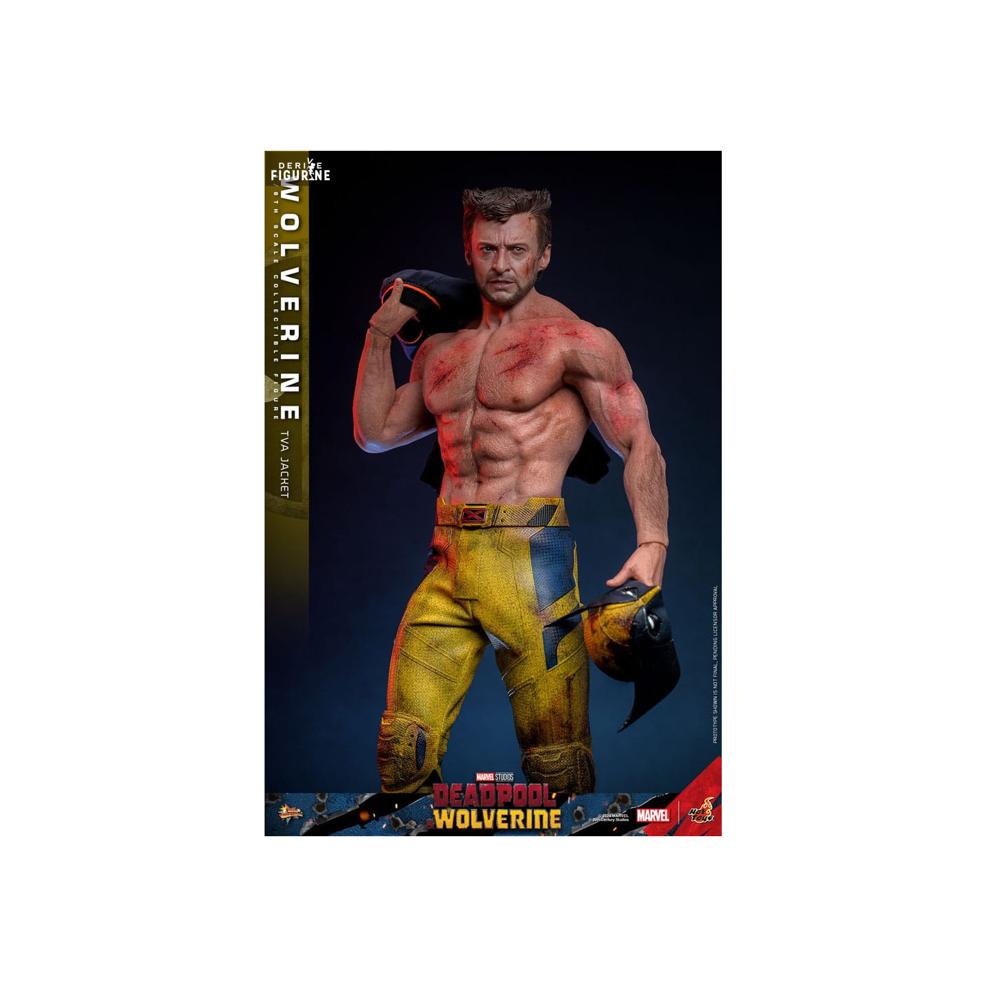 Official figure of Wolverine (TVA Jacket Version) which measures approximately 31 centimeters high, scale 1/6. It is from the Movie Masterpiece collection. The manufacturer is Hot Toys.
