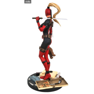 Official Lady Deadpool figure in resin which measures about 30 centimeters high. It is from the Premier Collection. The manufacturer is Diamond Select Toys.