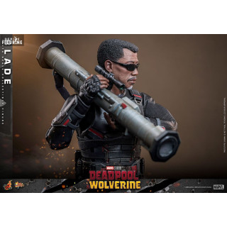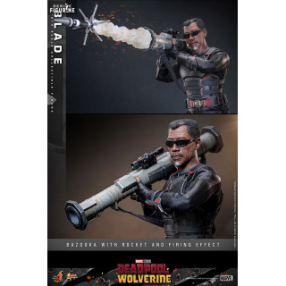This stunning Blade figure, crafted by Hot Toys, is part of the prestigious Movie Masterpiece collection. Standing approximately 30 centimeters tall, it captures the essence of the character as he appears in the Marvel cinematic universe. The details are meticulously sculpted, from the striking face with rolling eyeballs to the tactical black outfit, perfectly faithful to the on-screen representation. Blade’s arsenal includes his iconic katana with an interchangeable hilt, a bazooka with firing effects, and various secondary weapons. Interchangeable accessories allow for multiple display options, making this piece a must-have for collectors.