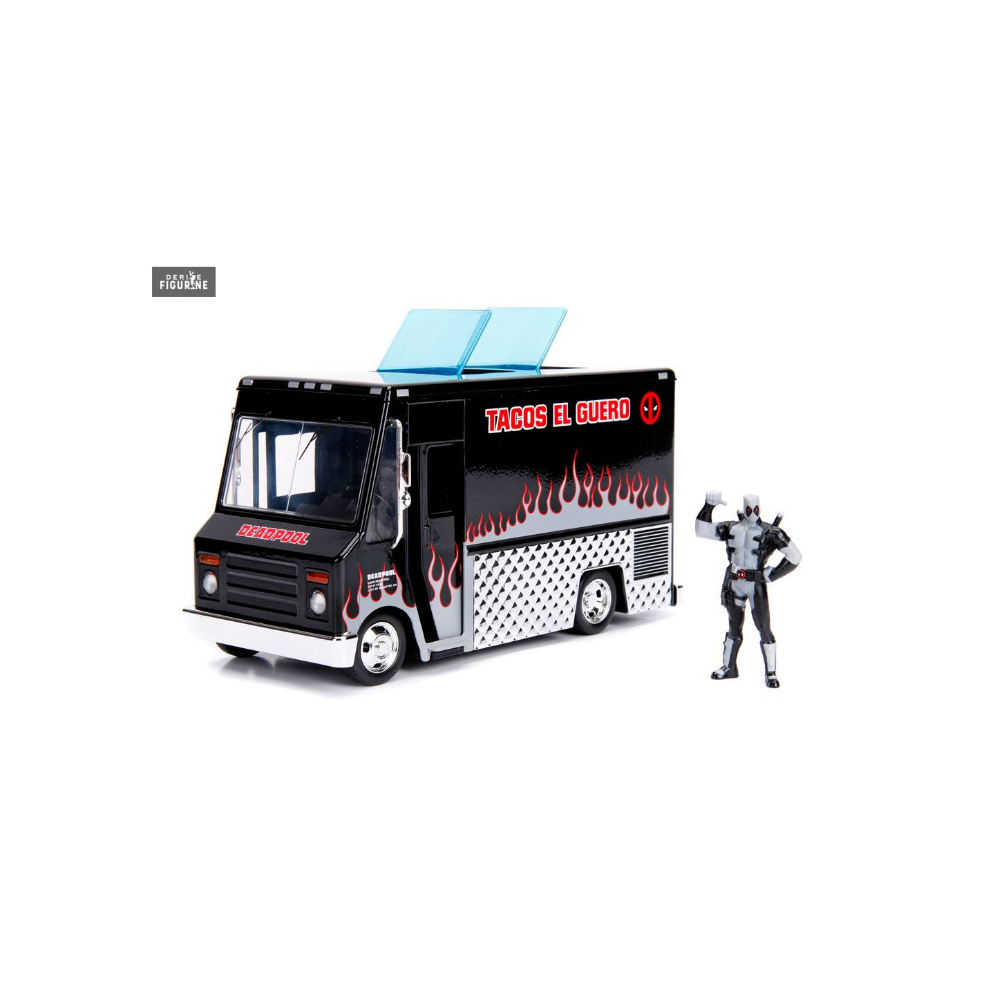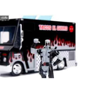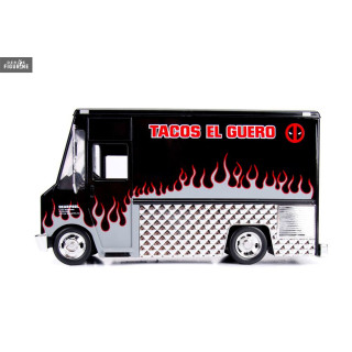 Official replica of Taco Truck Deadpool, version X-Force made of metal die cast and injected plastic, 1/24 scale. The manufacturer is Jada Toys.