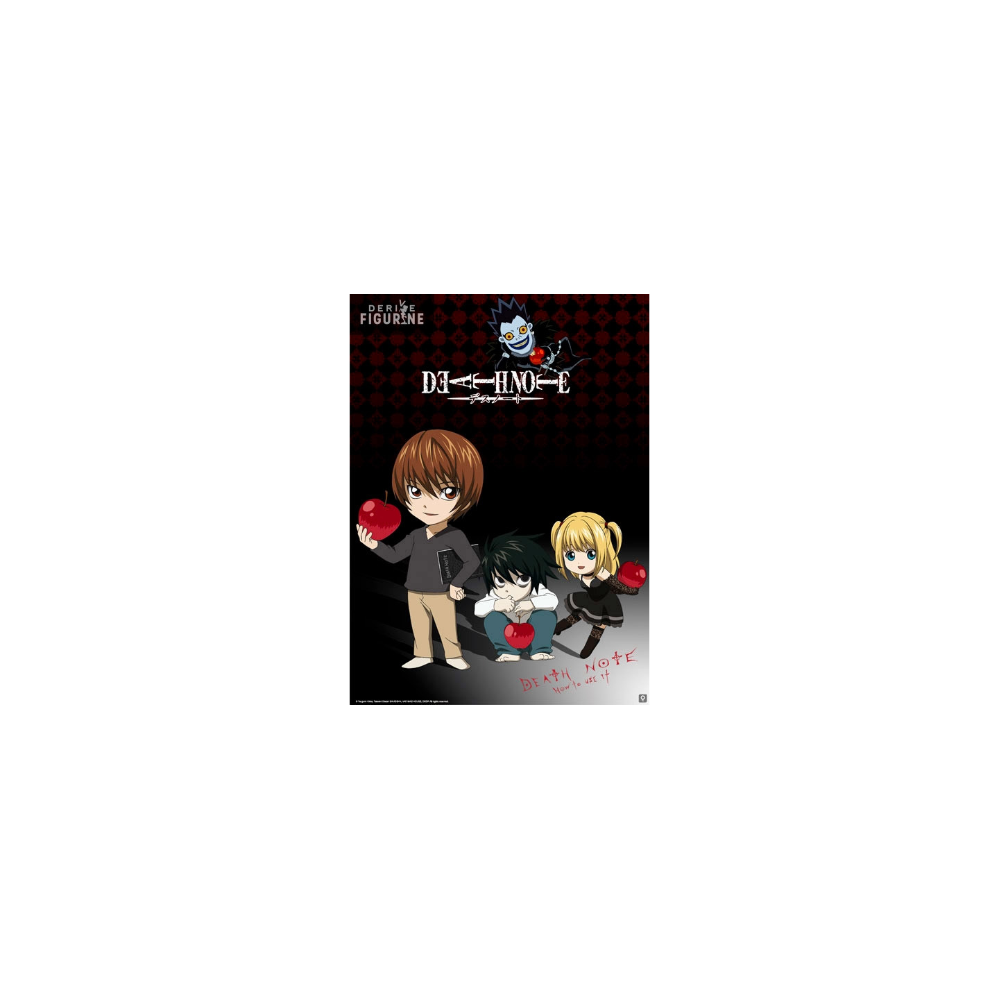Here is a nice poster of Misa, Light and L. They are in a form called chibi, and I do not know you, but I find them very cute like that. They also hold a red apple each and it will also be noted that Ryuk slipped discreetly into the picture.