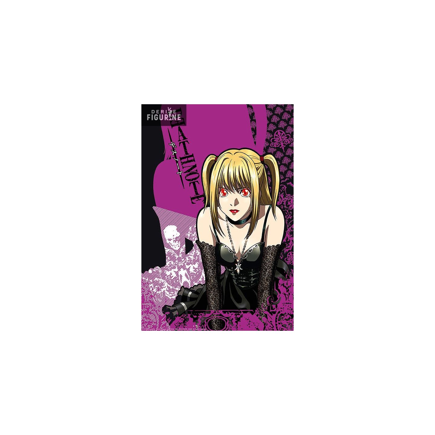 On this poster, we see the pretty Misa Amane in a gothic lolita / punk outfit, with red eyes. In addition to this, the purple and black side goes perfectly with the look of the girl and recalls in places the lace that she wears on the arms.
