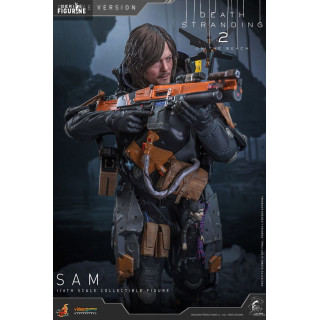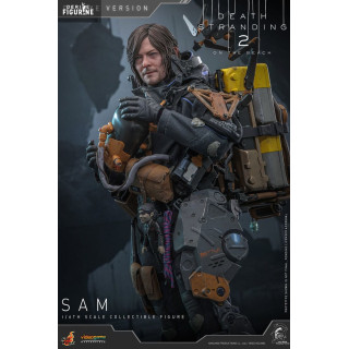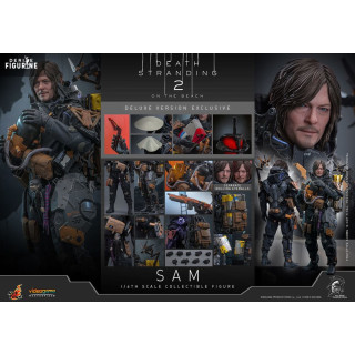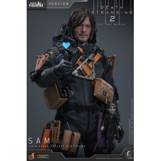 Sam returns in Death Stranding 2: On the Beach with a new mission and a highly detailed outfit. This Deluxe figure presents him as a fully loaded porter, ready to cross hostile terrain with a complete delivery rig and enigmatic companions. Its lifelike sculpt and extensive accessories make it a standout piece.