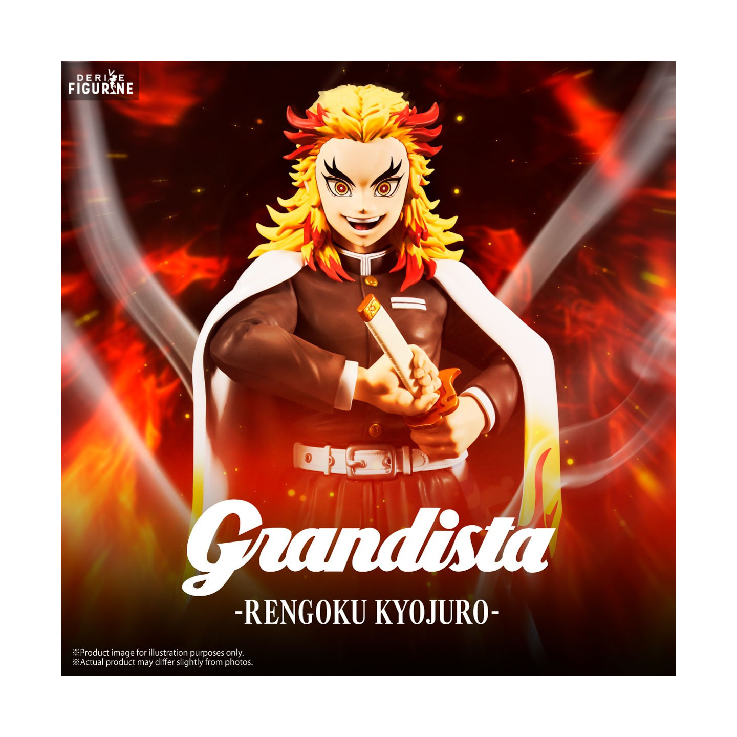 Official figure of Kyojuro Rengoku in PVC which measures approximately 24 centimeters high. It is from the Grandista collection. The manufacturer is Banpresto.