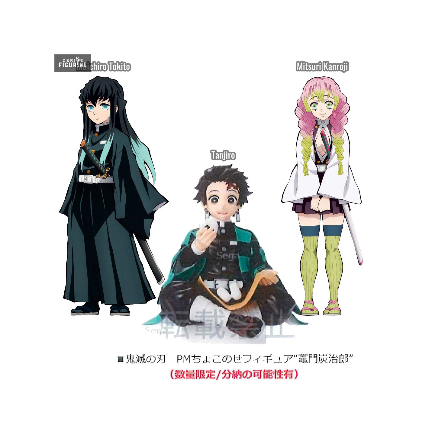 Official figure of your choice between Tanjiro (~15 cm), Mitsuri (~18 cm) or Tokito (~18 cm) in PVC which measures approximately 20 centimeters high. It comes from the PM collection. The manufacturer is Sega.