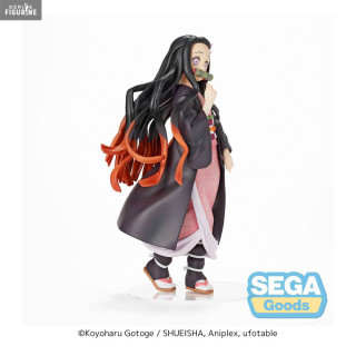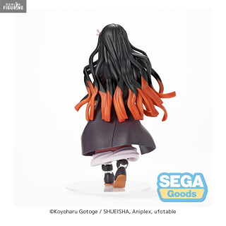 Official figure of your choice between Tanjiro (20 cm), Nezuko (21 cm), Inosuke (16 cm) or Zenitsu (14 cm) in PVC. The manufacturer is Sega.