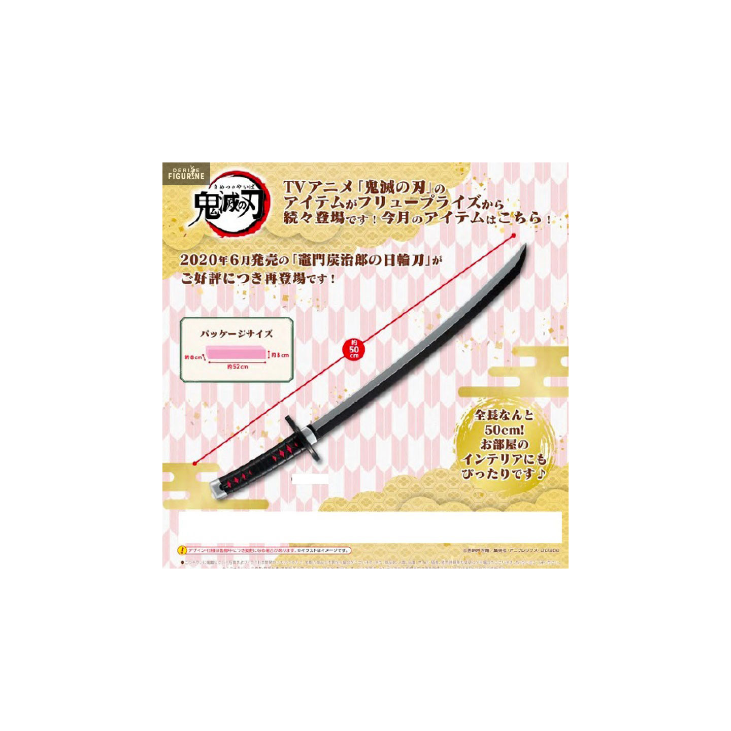 Official replica of Tanjiro's sword in PVC measuring approximately 50 centimeters long. The manufacturer is FuRyu.