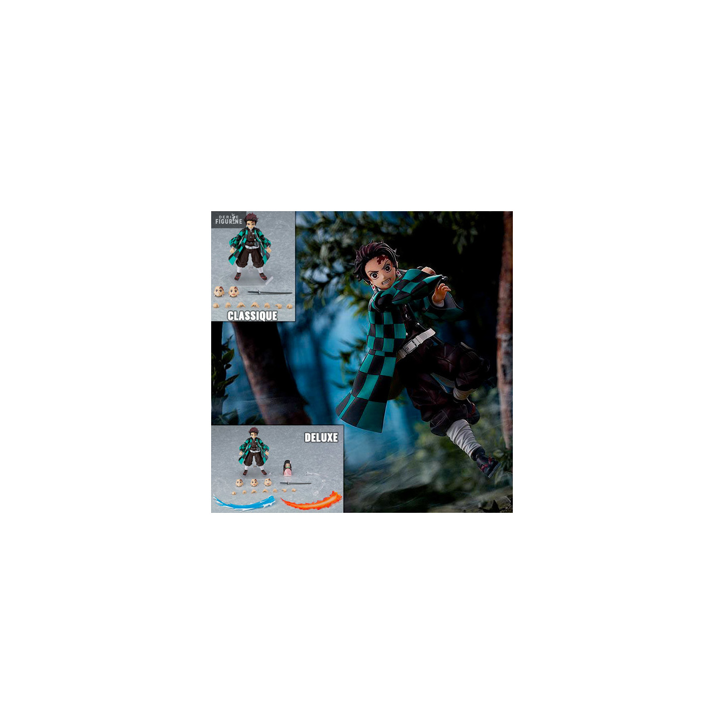Demon Slayer: Kimetsu no Yaiba is an anime and manga that takes us through the story of Tanjiro Kamado, a young demon slayer who wants to find an antidote to heal his sister Nezuko. This articulated figurine from the FIGMA collection therefore represents Tanjiro and you have the choice between two versions, the Classic including the figurine and some accessories or the Deluxe which adds 1 more faces, a small Nezuko, and two attack effects for reproduce sword attacks based on the elements of water and fire.