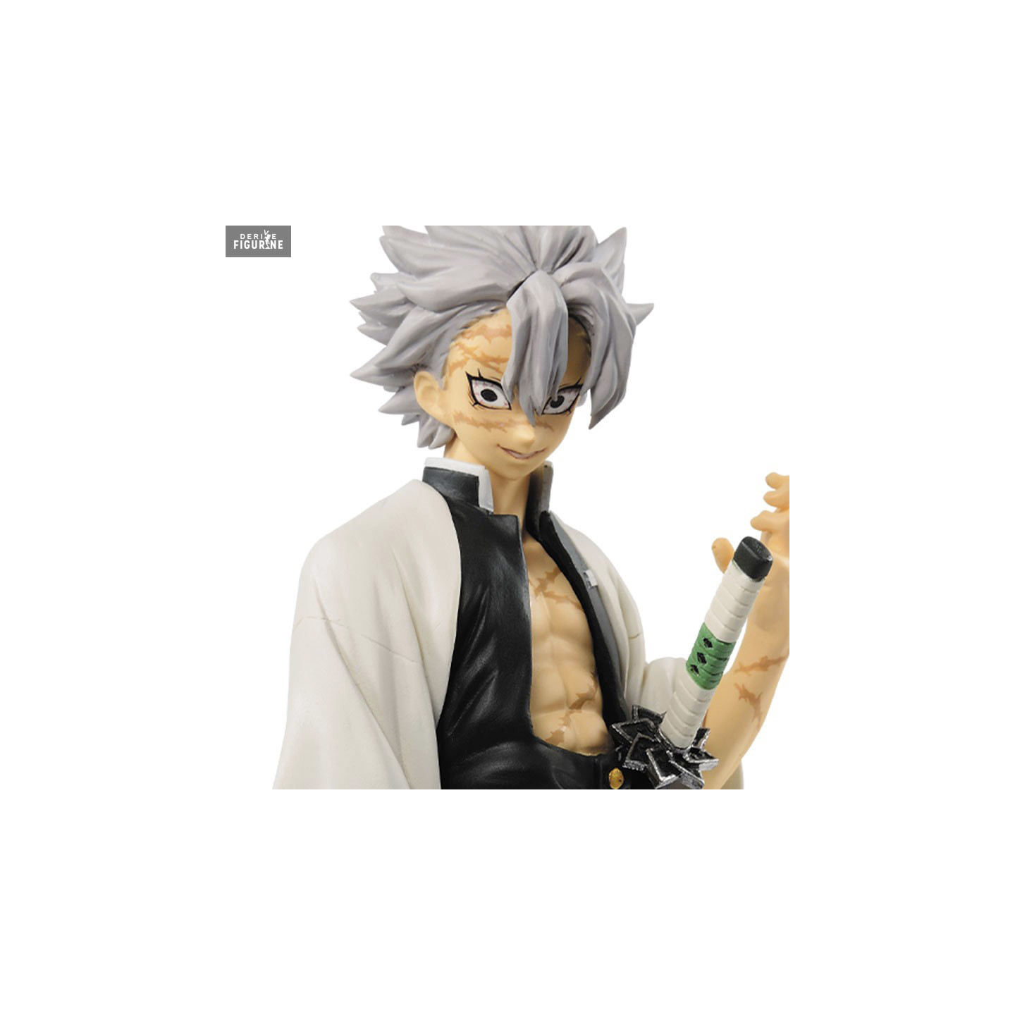 Official figure of Sanemi Shinazugawa in ABS/PVC which measures approximately 17 centimeters high. The manufacturer is Banpresto.