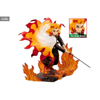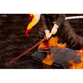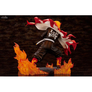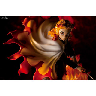 Official figure of Kyojuro Rengoku in PVC which measures approximately 22 centimeters high, scale 1/8. It is from the ARTFX collection. The manufacturer is Kotobukiya.