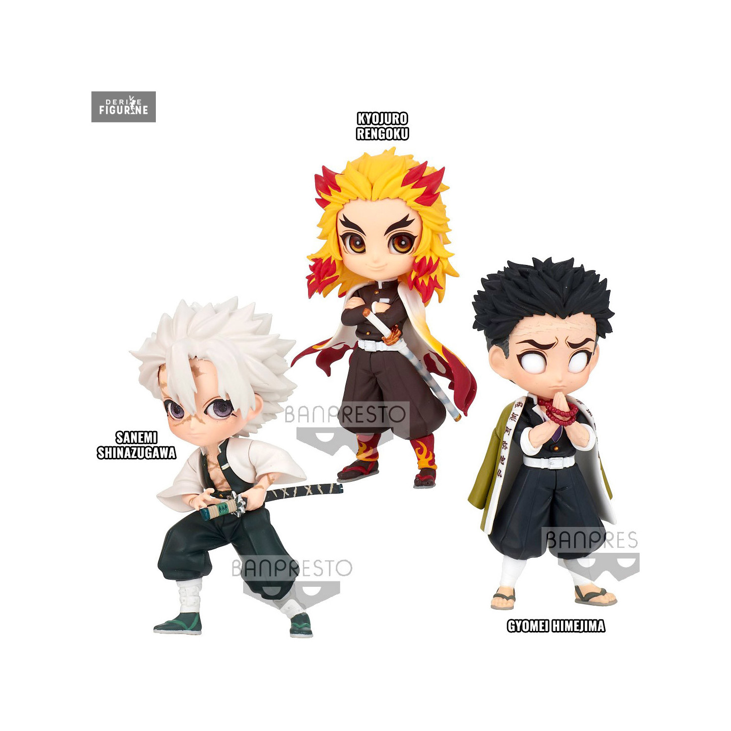 Official figure of your choice Kyojuro Rengoku, Sanemi Shinazugawa or Gyomei Himejima in PVC measuring about 7 centimeters high. It is from the Q Posket Petit collection. The manufacturer is Banpresto.