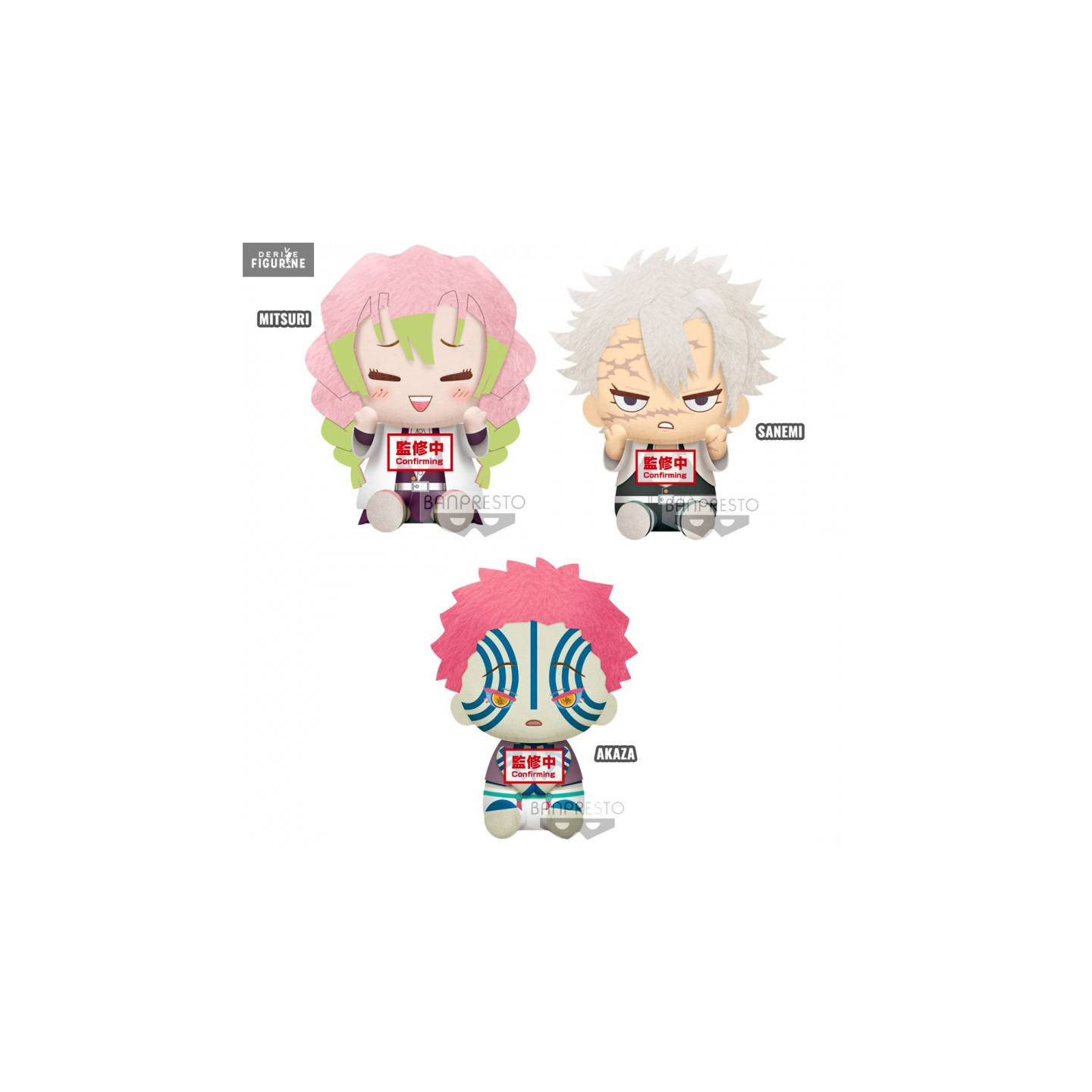 Official plush of your choice between Mitsuri, Sanemi or Akaza which measures approximately 20 centimeters high. The manufacturer is Banpresto.