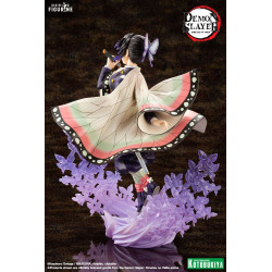 In Demon Slayer: Kimetsu no Yaiba, Shinobu Kocho is the graceful yet lethal Insect Hashira. Beneath her serene smile and soft voice lies a deadly fighter who dispatches demons with precise, poison-laced strikes. This ARTFX figure captures her mid-motion, floating lightly among stylized violet butterflies.