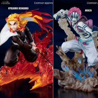 Official figure of your choice between Kyojuro Rengoku Flame Hashira (~ 15 cm) or Akaza Upper Tree (~ 18 cm) in PVC. It is from the FiguartsZERO collection. The manufacturer is Tamashii Nations.