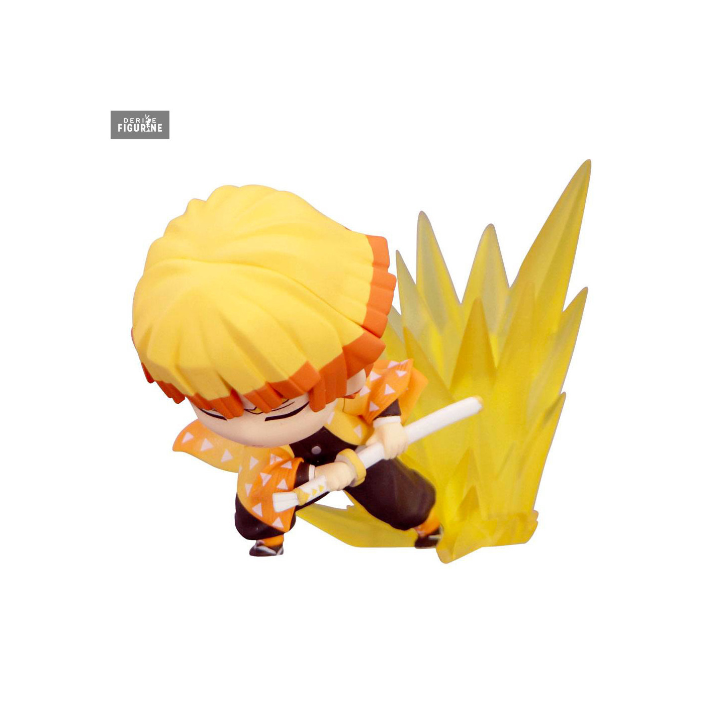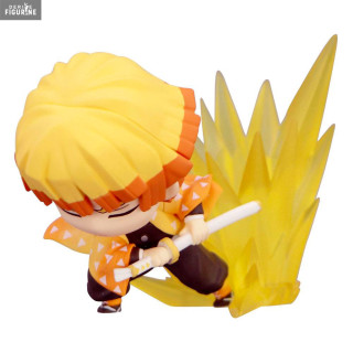 Agatsuma Zenitsu, one of the most unique and memorable demon slayers from the "Demon Slayer: Kimetsu no Yaiba" universe, is captured in this dynamic and adorable figure from the Hold collection. Zenitsu is known for his anxious temperament and tendency to panic in the face of danger, but beneath this apparent fragility lies a formidable warrior. When pushed to his limits or plunged into deep sleep, Zenitsu reveals his extraordinary mastery of the Thunder Breathing technique, capable of taking down demons in the blink of an eye with his "First Form: Thunderclap and Flash."