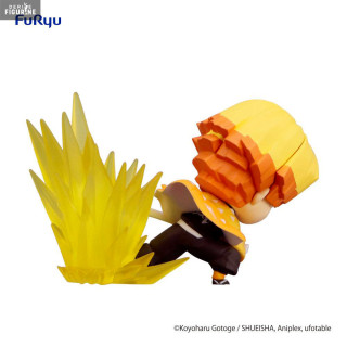 Official figure of Agatsuma Zenitsu in PVC which measures approximately 7 centimeters high. It is from the Hold collection. The manufacturer is FuRyu.