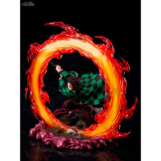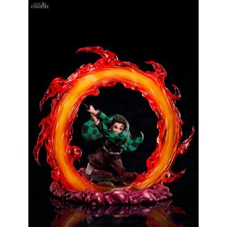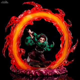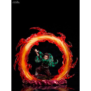 After his family was wiped out and his sister turned into a demon by Kuzan, Tanjiro put his whole heart into becoming a demon hunter. We can see around him a circle of fire that he created by throwing the blue paradise, and the rendering of this statuette is really crazy.