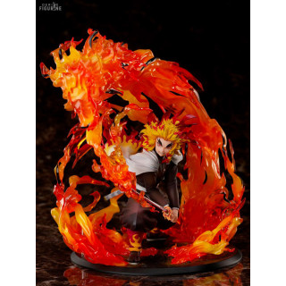 Official figure of Kyojuro Rengoku in PVC which measures about 26 centimeters high, scale 1/8. The manufacturer is Aniplex.