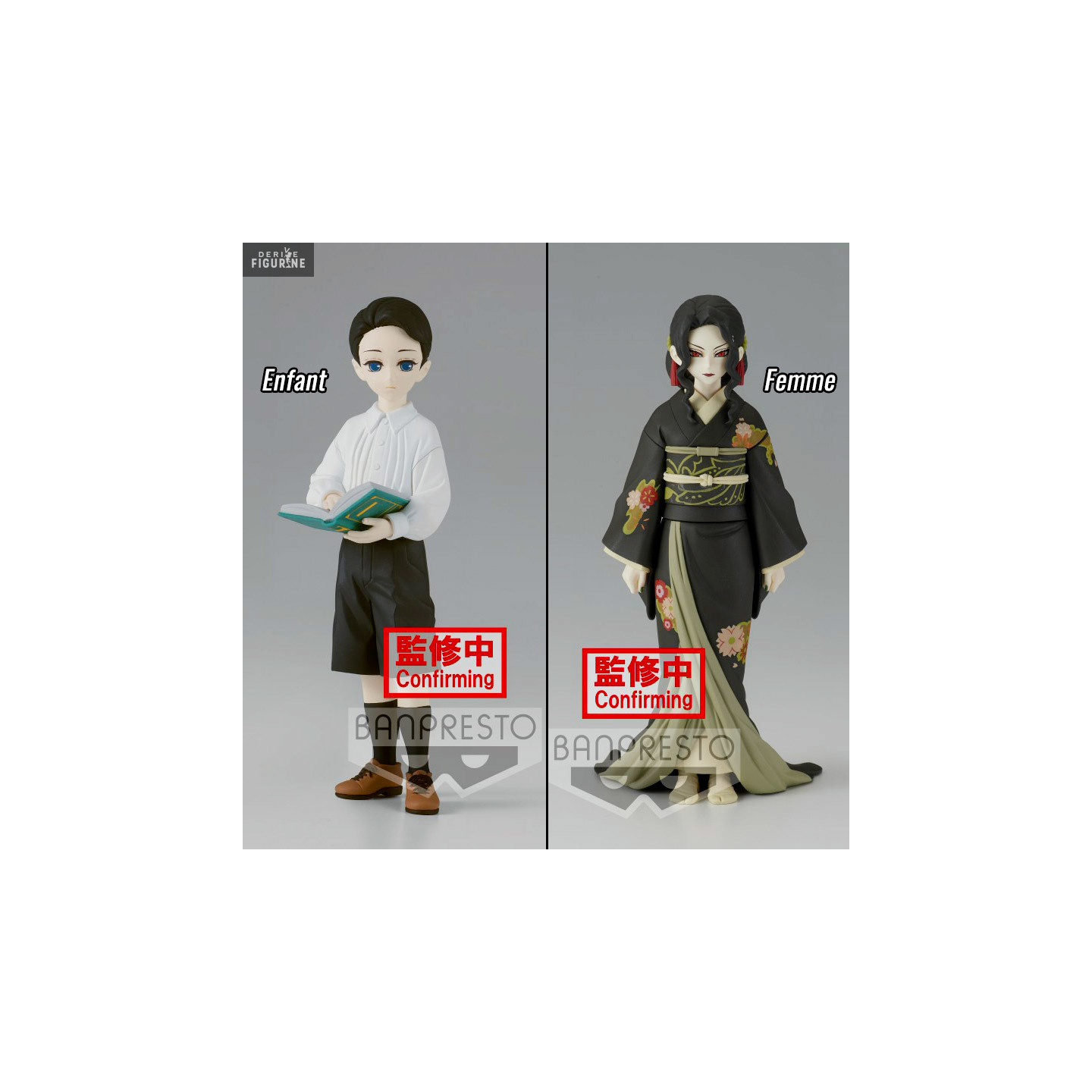 Official Muzan Kibutsuji figure of your choice between Woman or Kid version in PVC which measures approximately 14 centimeters high. It is from the Demon Series collection. The manufacturer is Banpresto.