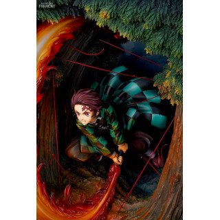 This premium figure from the Demon Slayer: Kimetsu no Yaiba universe shows us the young demon slayer Tanjiro Kamado using the Hinokami Kagura Dance technique. This special technique saved Tanjiro's life as he faced off against the dangerous Riu and it was through memories of times spent with his father when the latter performed the fire dance that Tanjiro was able to use it with his katana. The figure also looks amazing with the fire coming to life through an LED effect where we see Tanjiro tearing Riu's super-powerful red threads to pieces. It also has a diorama decor box to be displayed representing the forest where the fight took place.