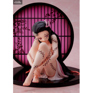 Official figure of Nezuko in PVC which measures approximately 12 centimeters high, scale 1/8. The manufacturer is Aniplex.