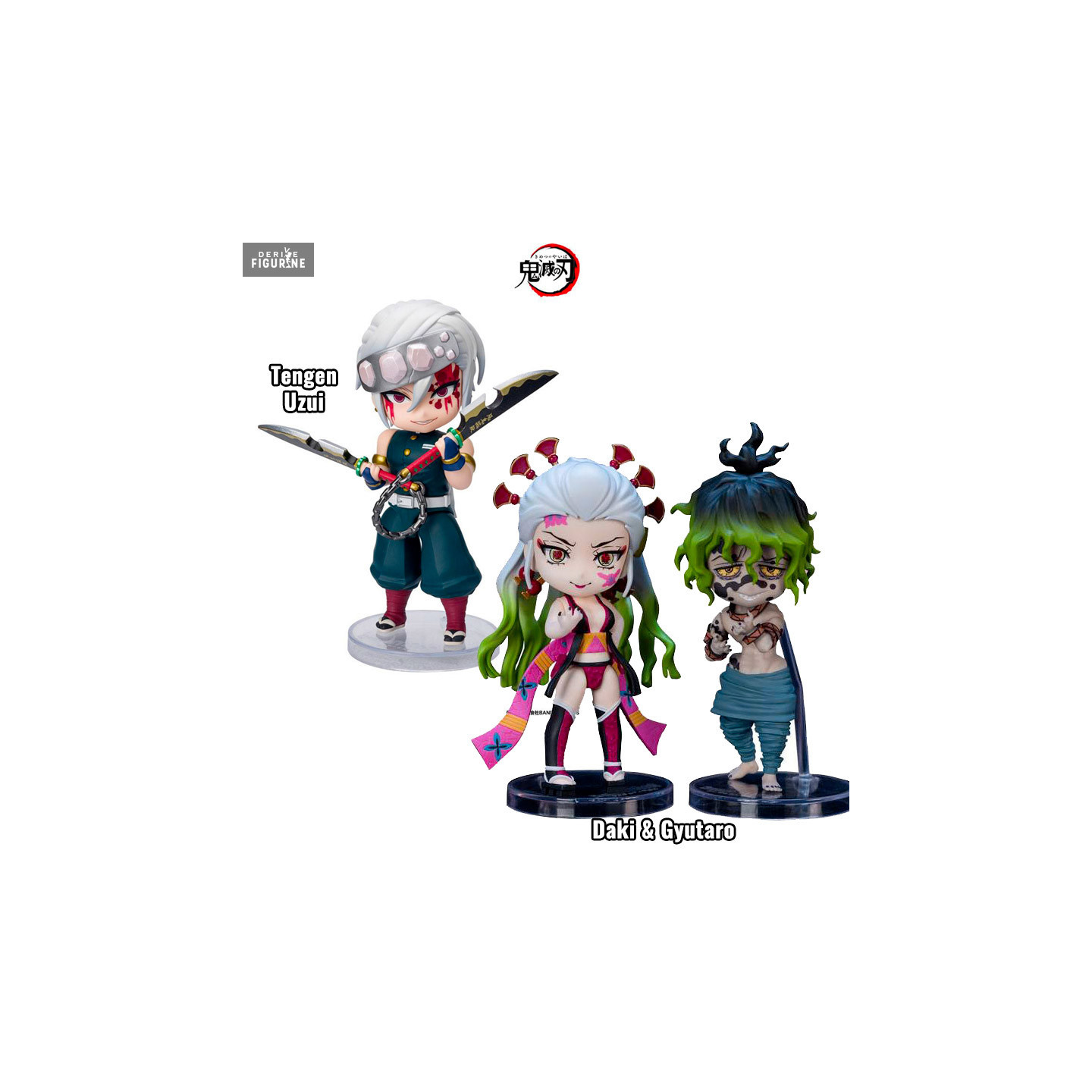 Official figure of Tengen Uzui Sound Breathing (10 cm) or Daki & Gyutaro (9 cm) which measures approximately 9 centimeters high. It is from the Figuarts Mini collection. The manufacturer is Tamashii Nations.