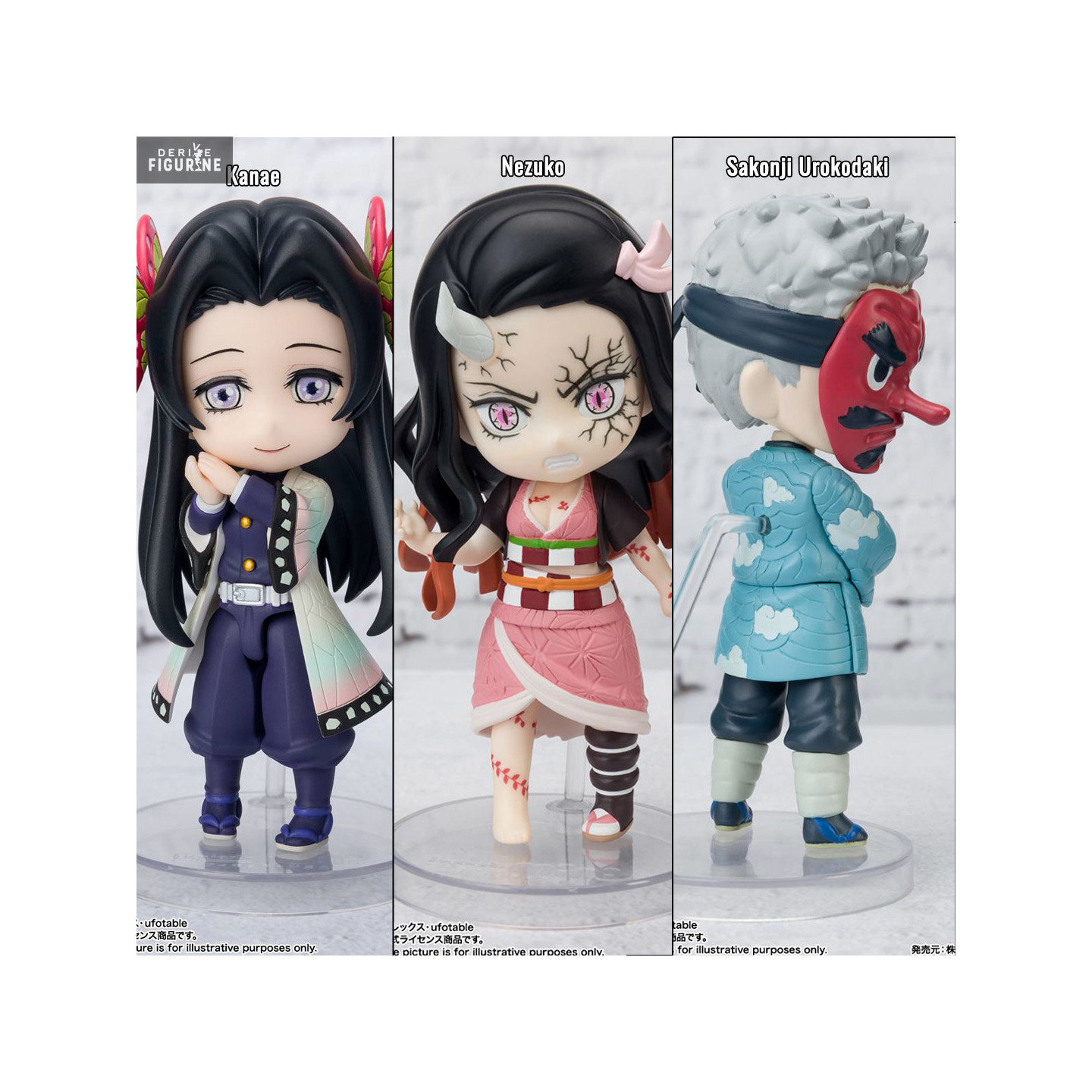 Official figure of your choice between Nezuko Kamado, Kanae Kocho or Sakonji Urokodaki in PVC which measures approximately 9 centimeters high. It is from the Figuarts Mini collection. The manufacturer is Bandai.