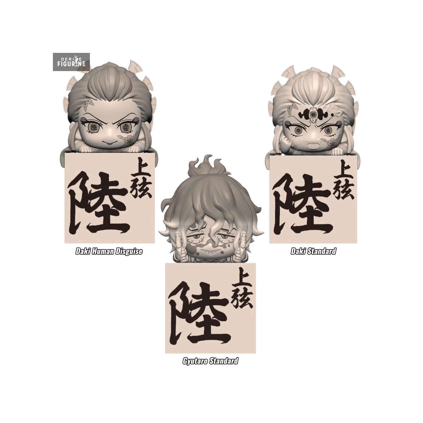 Official figure of your choice between Daki Standard or Human Disguise or Gyutaro in PVC which measures approximately 10 centimeters high. It is from the Hikkake collection. The manufacturer is FuRyu.