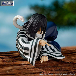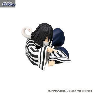 Official figure of Iguro Obanai in PVC which measures approximately 11 centimeters high. It is from the Noodle Stopper collection. The manufacturer is FuRyu.