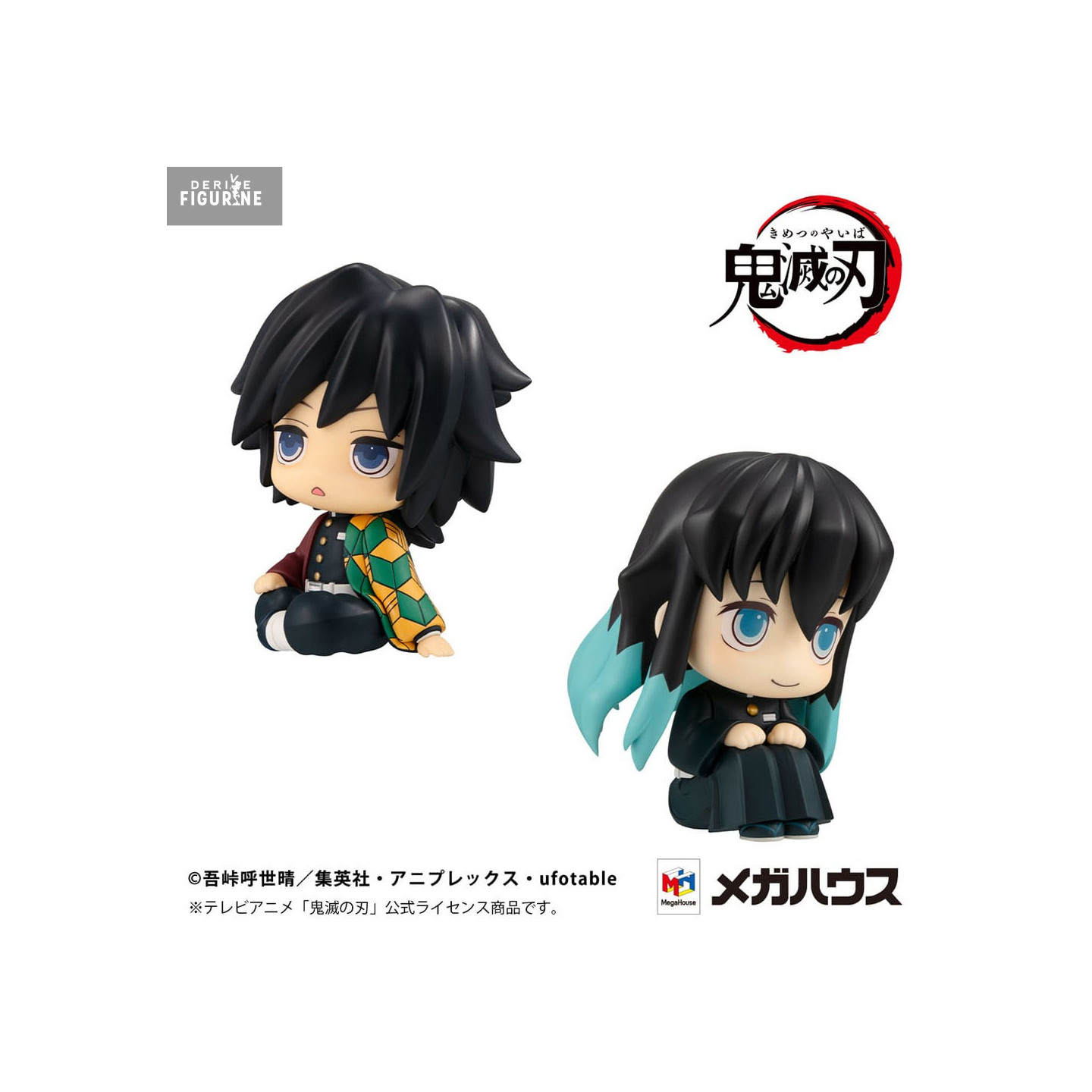 Discover an essential duo from the Demon Slayer: Kimetsu no Yaiba universe with this special Look Up figurine pack, featuring Giyu Tomioka and Muichiro Tokito, produced by Megahouse. This pack of 11cm PVC figures captures these two pillars in adorable and expressive poses, bringing a touch of charm and sweetness to any collection.