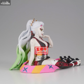 This figure from Banpresto's Glitter & Glamours collection perfectly embodies Daki’s enchanting beauty with precise details and an elegant pose, seated with an enigmatic smile. Her characteristic features, such as her white hair with colorful highlights and floral-patterned attire, are finely reproduced, offering fans a faithful representation of the character. The glittering finishes of this collection add a glamorous touch, enhancing Daki's seductive and menacing nature, making it a valuable piece in any Demon Slayer collection.