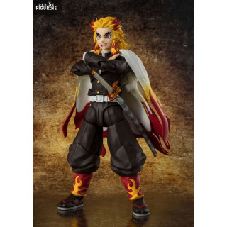 Official figure of Kyojuro Rengoku in PVC which measures approximately 15 centimeters high. It is from the S.H.Figuarts collection. The manufacturer is Bandai.