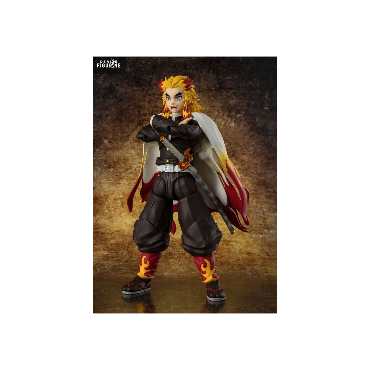 The official figure of Kyojuro Rengoku, from the S.H.Figuarts collection and manufactured by Bandai, stands approximately 15 centimeters tall. This figure faithfully represents the Flame Hashira of the Demon Slayer Corps, showcasing his powerful and determined stance that captures his courage and strength.